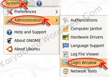 1. Mas, pilihan system>administraion>login window pada ubuntu lucid kok ga ada ya…. Mohon bantuannya Mas…