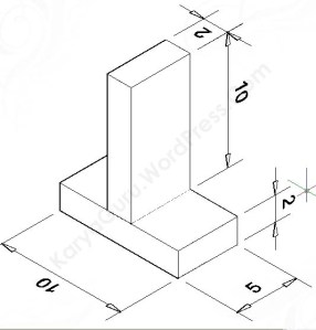 Buatlah benda 3D dengan ukuran seperti gambar berikut menggunakan perintah Box.
