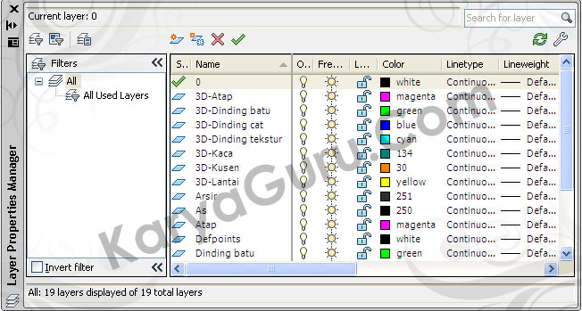 Silahkan buka file terakhir yang sudah Anda download disini, kemudian buat beberapa layer baru dan beri nama serta warnanya.