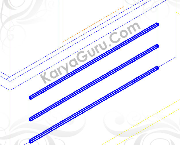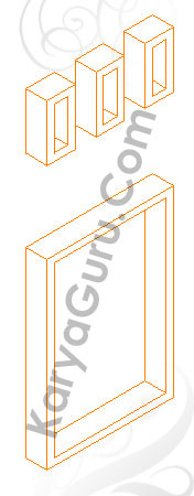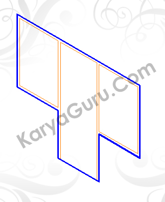 Aktifkan layer 3D-Kusen kemudian Copy semua obyek kusen ke bagian luar 3d pos jaga agar lebih mudah dalam pembuatan 3d kusennya. Extrude hasil duplikat obyek kusen tersebut.