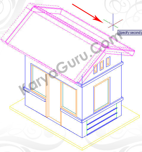 Putar gambar pos jaga dengan menggunakan perintah 3drotate dan sumbu putarnya adalah Sumbu X.