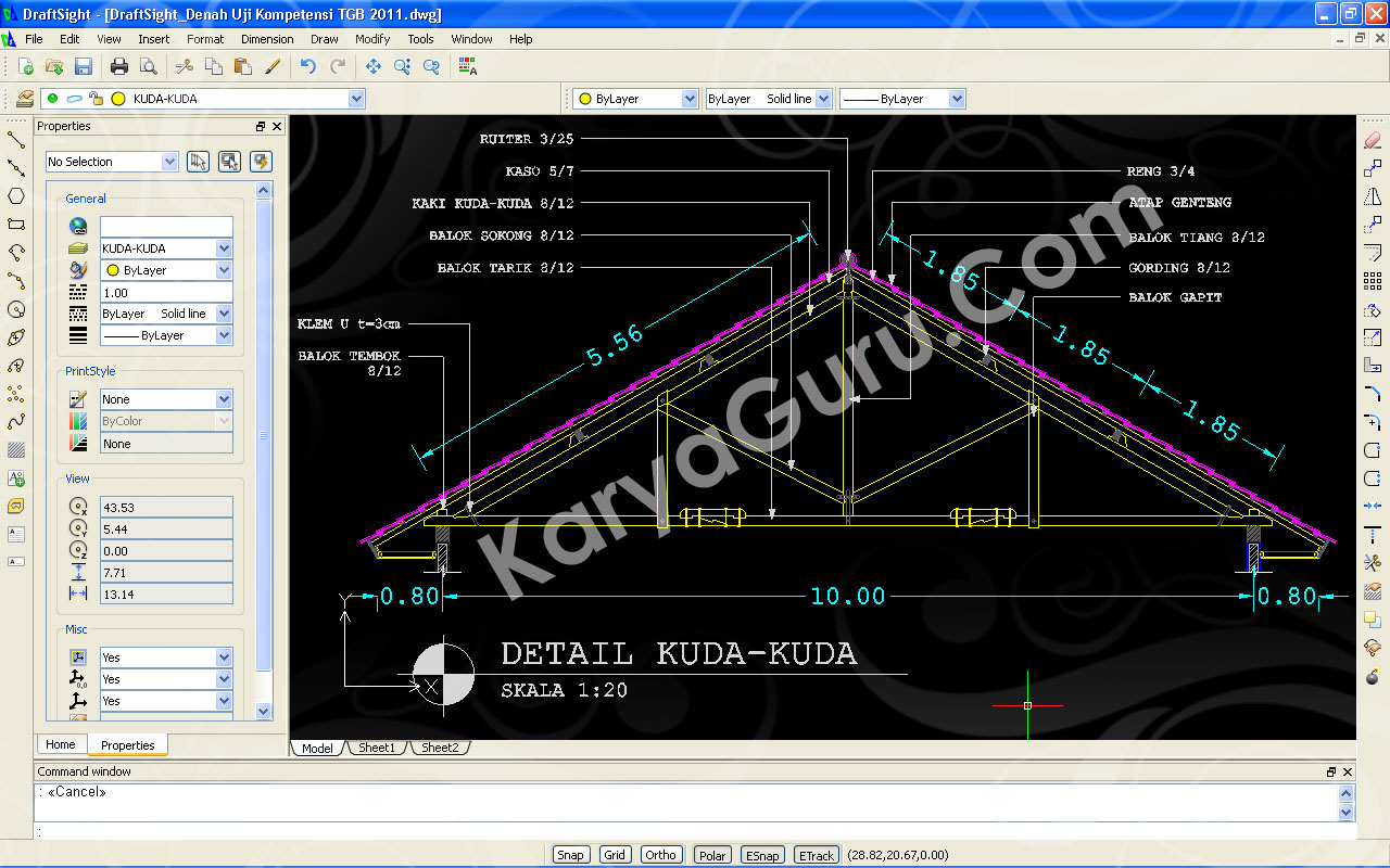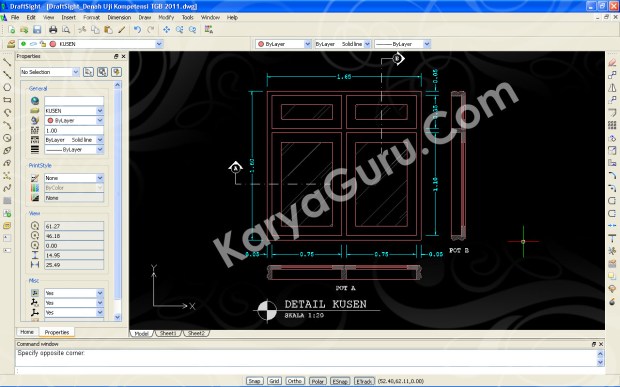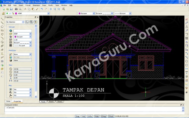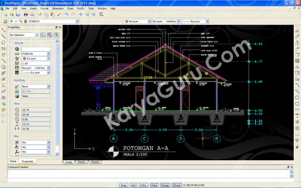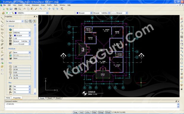 Beberapa hari ini saya sedang asyik mencoba-coba DraftSight (Software CAD Gratisan) yang persis sekali perintah-perintahnya dengan AutoCAD. Selama Siswa-siswi Teknik Gambar Bangunan sedang sibuk mengerjakan uji kompetensi, saya juga ikutan sibuk menyelesaikan soal uji kompetensi tersebut namun bukan dengan AutoCAD melainkan dengan DraftSight. Tidak ada kesulitan selama menyelesaikan gambar tersebut hanya kadang speed-nya saja yang tidak secepat AutoCAD atau jangan-jangan laptop saya yang dah jadul…???