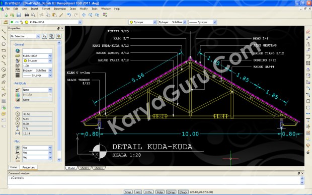 Btw ini capture dari gambar-gambar uji kompetensi Teknik Gambar Bangunan 2011 yang 100% saya buat dengan menggunakan DraftSight.
