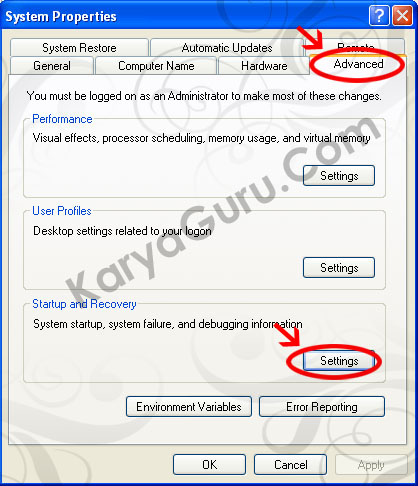 2i. Pilih Tab Advanced lalu klik Settings pada bagian Startup and Recovery