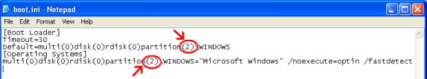 4i. kemudian ganti partsisi sesuai dengan letak partisi yang dipilih untuk windows. Saya mengganti menjadi (2) karena letak windows pada partisi kedua.