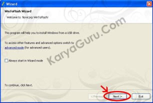 - Masukan CD Installer Windows ke dalam CD/DVD Room dan colok Flashdisk ke port usb yang ada. Jalankan aplikasinya dengan mengklik WinToFlashh.exe