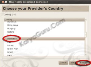 Klik Forward untuk melanjutkan memilih negara dari provider yang digunakan.
