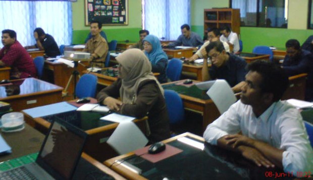 Hari ini baru saja dimulai pelatihan “Pembuatan Media Pembelajaran dengan SketchUp” dan saya mendapat amanah untuk menjadi asisten dimana narasumbernya adalah Pak Sudarmanto yang berkompeten di materi ini. Ternyata jadi asisten narasumber cape juga loh kerjanya… bener deh… Tapi jujur saya sangat senang sekali dengan antusias peserta.