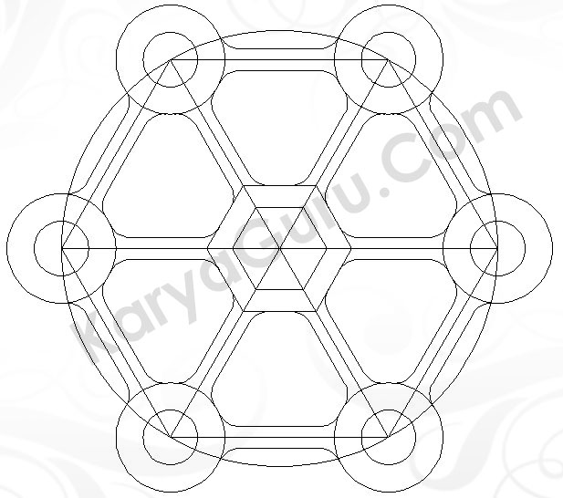 Lakukan langkah Polygon diatas untuk membuat obyek segi enam dengan jarak 57.5 dari titik pusat ke sisi obyek