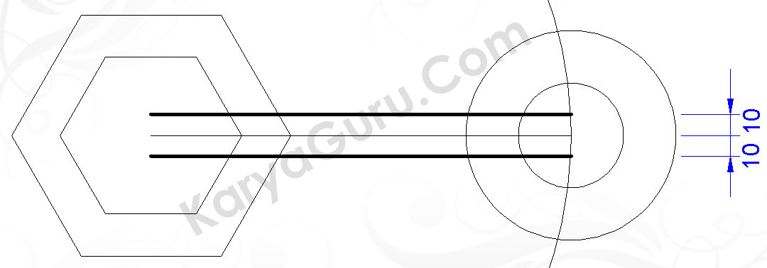 Duplikat garis yang sudah dibuat ke atas dan ke bawah dengan jarak masing-masing 10 dengan perintah Copy