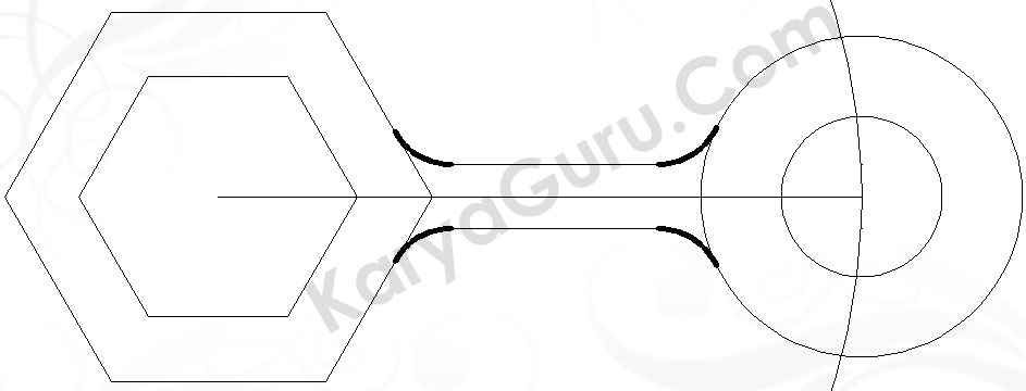 Buatlah garis menggunakan perintah Line dari titik pusat polygon ke titik pusat lingkaran disisi kanan