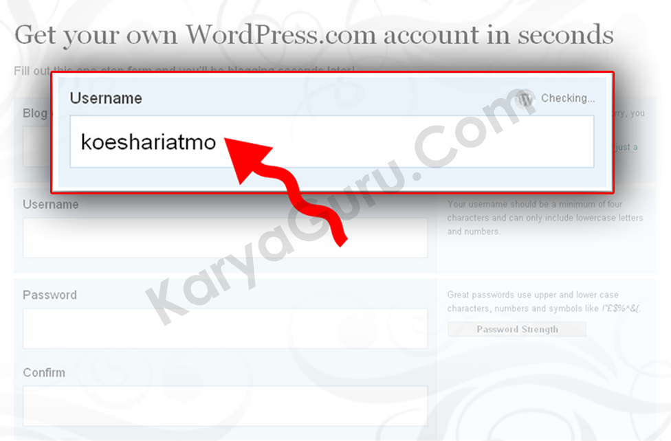 Ketikan username yang akan digunakan untuk masuk ke dalam are administrator.