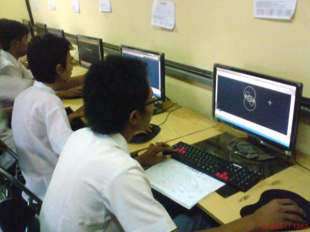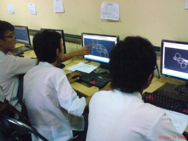 Btw saya mau sharing peristiwa yang terjadi satu minggu lalu di lab kkpi-cad tempat mereka belajar selama ini. Karena ada kegiatan revitalisasi peralatan otomotif dan mekatronika di samping lab tersebut, maka dampakya terasa semenjak 2 minggu lalu. Aktifitas pekerja membongkar, memasang dan merapikan ruangan perakitan mobil menyebabkan terjadinya salah satu peristiwa yang dibilang cukup mencengangkan.