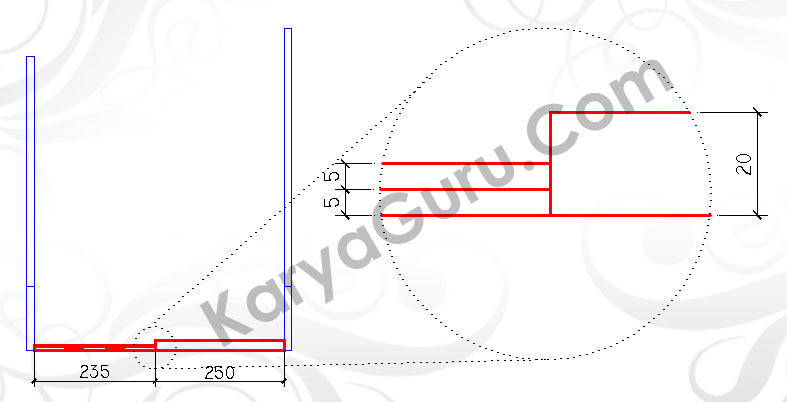 Gunakan kembali perintah LINE atau POLYLINE untuk menggambar garis dinding depan beserta listnya.