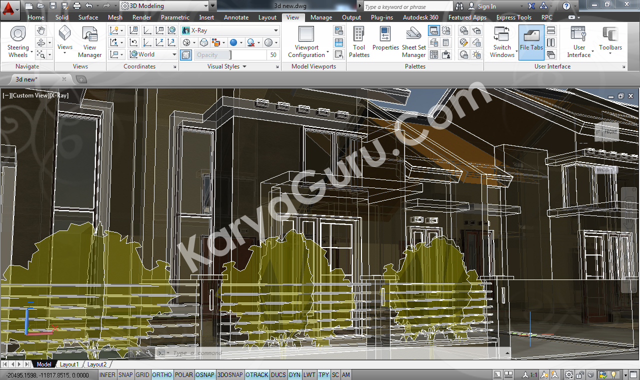Pembuatan 3d model di autocad berangkat dari denah yang sudah ada, untuk tampak akan lebih mudah proses penyelesaiannya karena dari 3d model yang ada langsung bisa di capture untuk bentuk tampak yang diinginkan tanpa harus membuat secara manual.