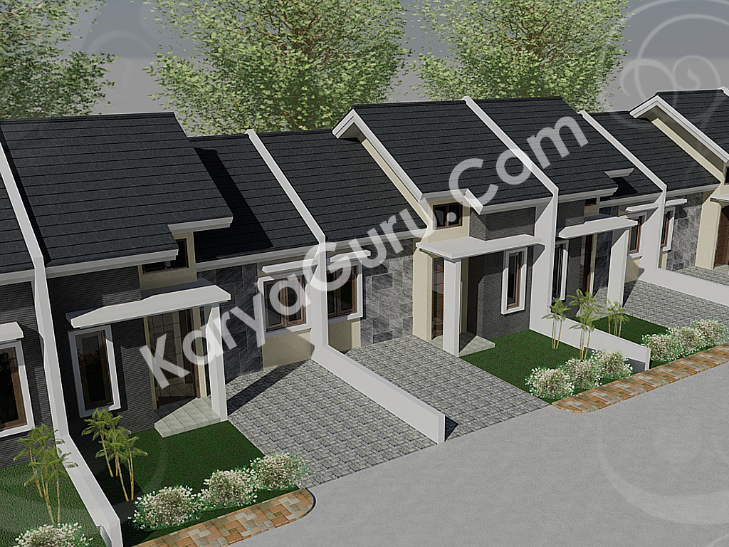 Iseng2 saya render saja bentuk 3 dimensi dari kasus perumahan minimalis tersebut dan hasilnya beberapa gambar berikut ini: