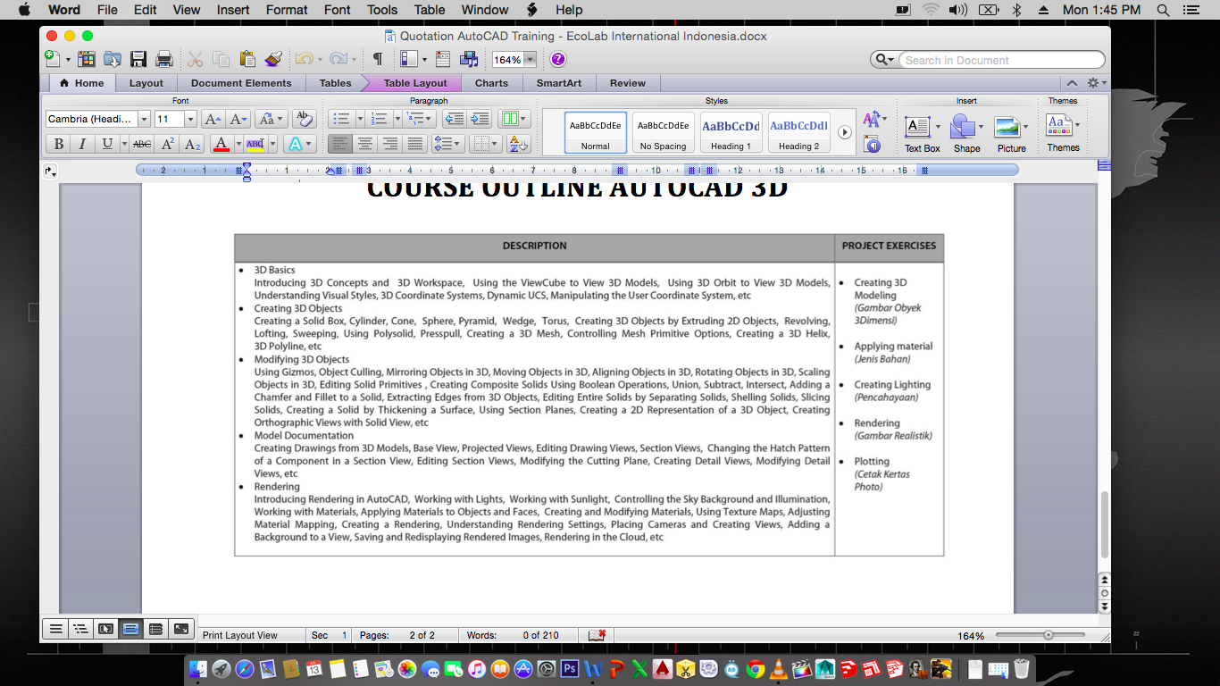 3D ModelingKursus Private AutoCAD 2D & 3D di Pasar Segar Depok