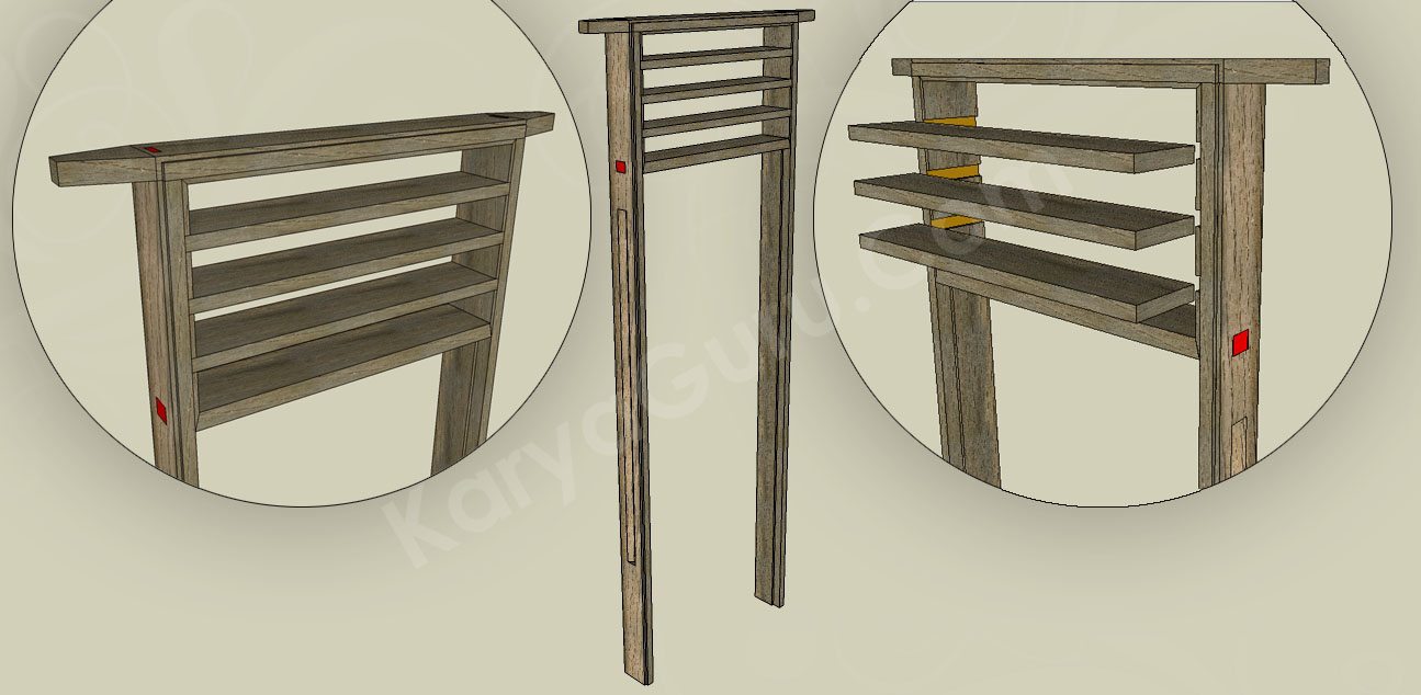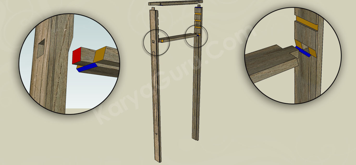 Sambungan konstruksi kayu untuk kusen pintu pada hubungan ambang tengah dijelaskan pada gambar dibawah ini: