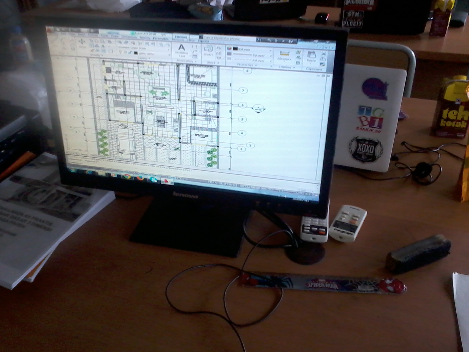 Pelaksanaan training autocad untuk pendalaman materi 2 dimensi khususnya teknik bangunan arsitektur di SMKN 56 Jakarta Utara sudah mencapai pertemuan ke-4. Setiap peserta mendapatkan tugas dengan desain yang berbeda untuk kemudian dibuat denah, tampak depan – kanan – kiri – belakang – atas, serta potongan secara detail.
