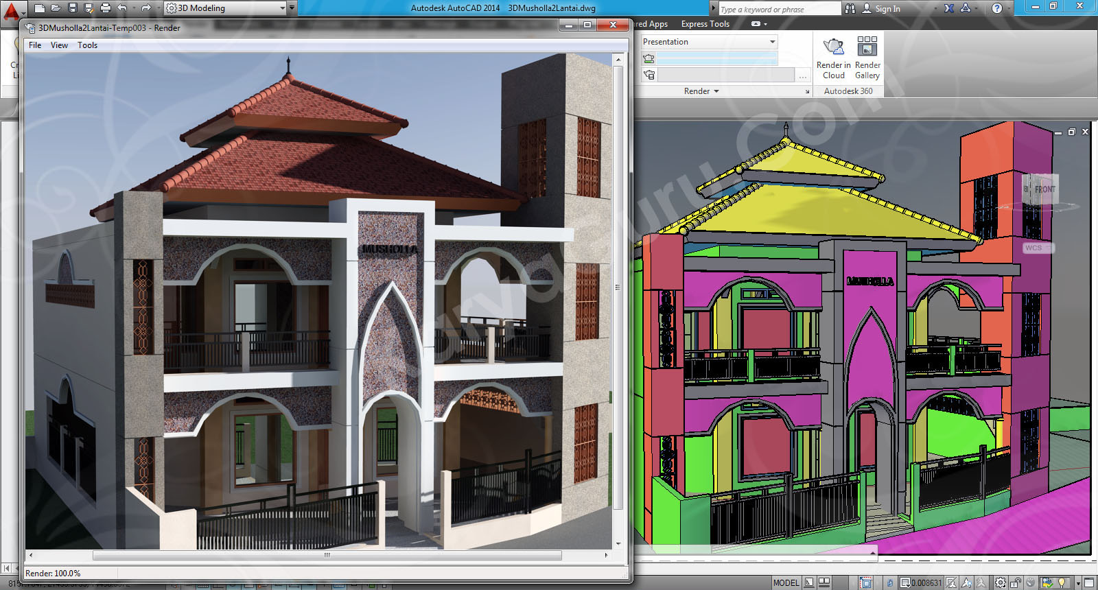 NB: Untuk latihan rendering di autocad, Anda dapat mendownload secara gratis bentuk 3d model (.dwg) lainnya di >> http://wp.me/pKugu-1Sc