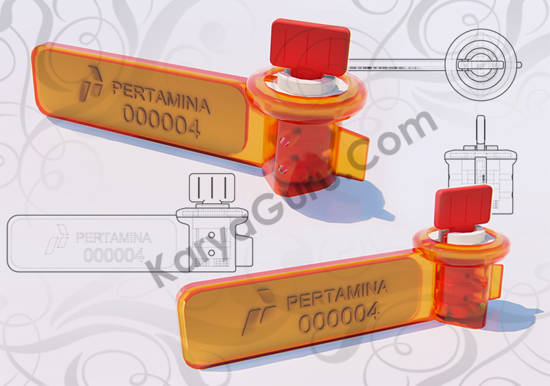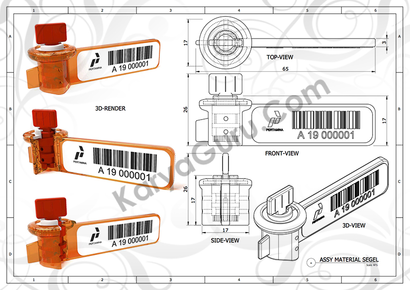 Berlanjut ke revisi ke-3 (terakhir), maka hasil akhir untuk pekerjaan visualisasi 2D dan 3D desain material segel pertamina menjadi beberapa tampilan berikut ini: