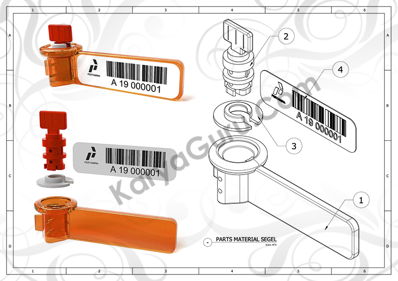 Beberapa waktu yang lalu sempat membantu dalam proses pembuatan visualisasi dalam bentuk gambar 2 dimensi dan 3 dimensi serta rendering untuk desain material segel pertamina. Beberapa kali hasil pekerjaan tersebut mengalami revisi baik posisi komponen maupun warnanya materialnya.