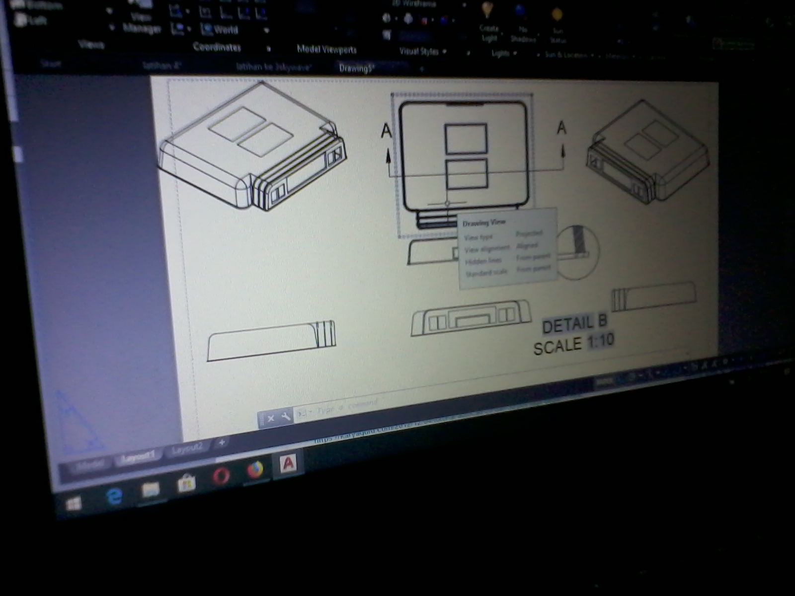 Materi autocad 3d berikutnya membuat gambar kerja dari obyek 3d yang dibuat dengan kasus-kasus lainnya. Beberapa perintah autocad yang dugunakan dari materi ini antara lain Viewbase, Layout, Projection, Section dan sebagainya.